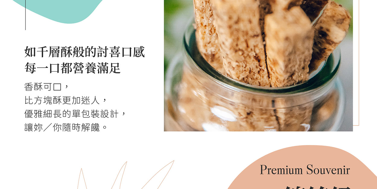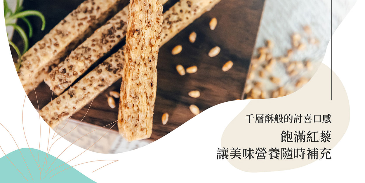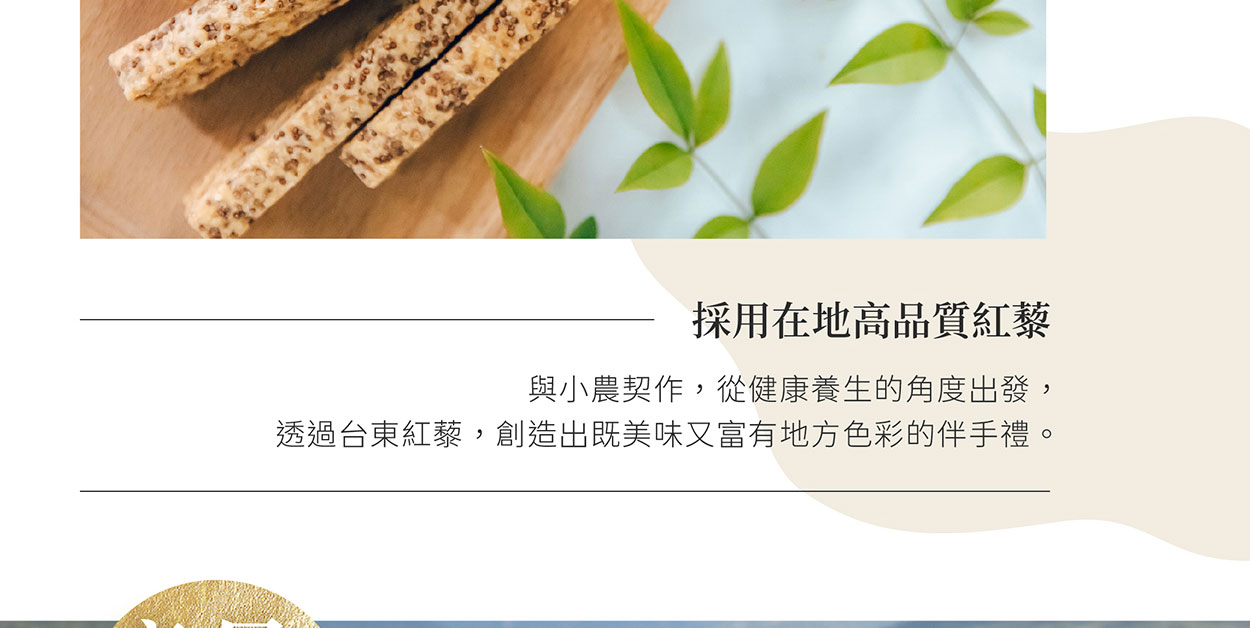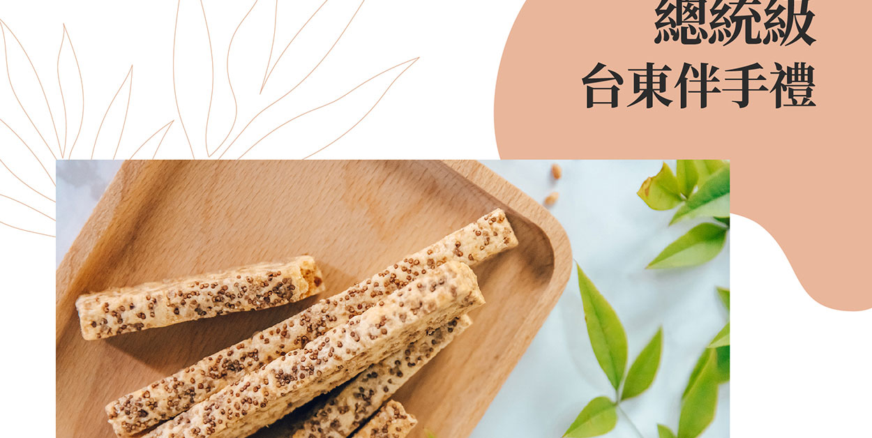 選用「台東紅藜」為主要食材, 紅藜食材加上穀物棒的香脆,大人小孩都愛吃,愈吃愈涮嘴,方便攜帶小包裝,營養美味的超人氣總統級伴手禮。