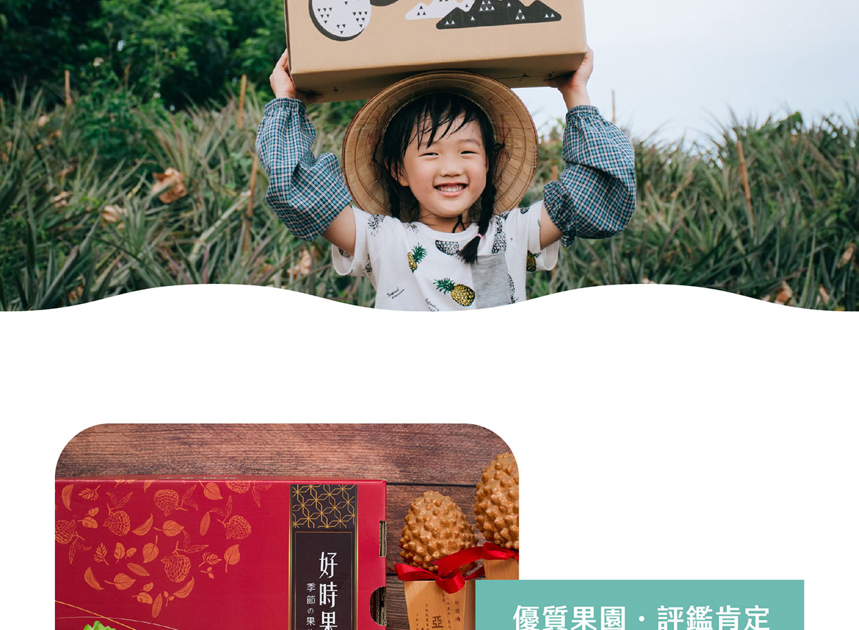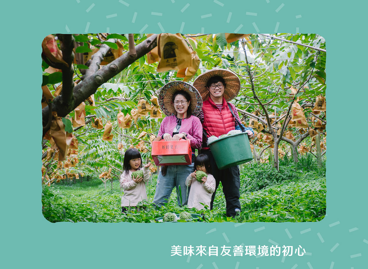 【好時果子】由青農夫婦——謹鴻和沛縈在台東創立,出於對農業與自然的愛,將自身農學院專業投入友善環境的農法,友善土地並孕育美味、健康又安心的優質水果。目前以釋迦為本業,並不時會分享如鳳梨、百香果等更多優質水果。堅持「好時節」所產的「好食果」, 讓每個品嚐過的朋友,都能感受農夫的辛勤付出與熱誠。「謝謝你支持好時果子,願我們的努力付出能為你的生活獻上一點美好。」