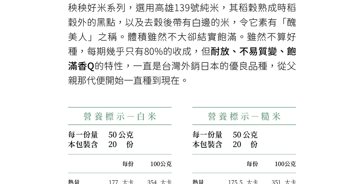 - 品 種:高雄139號米,俗稱醜美人,口感Q彈飽滿