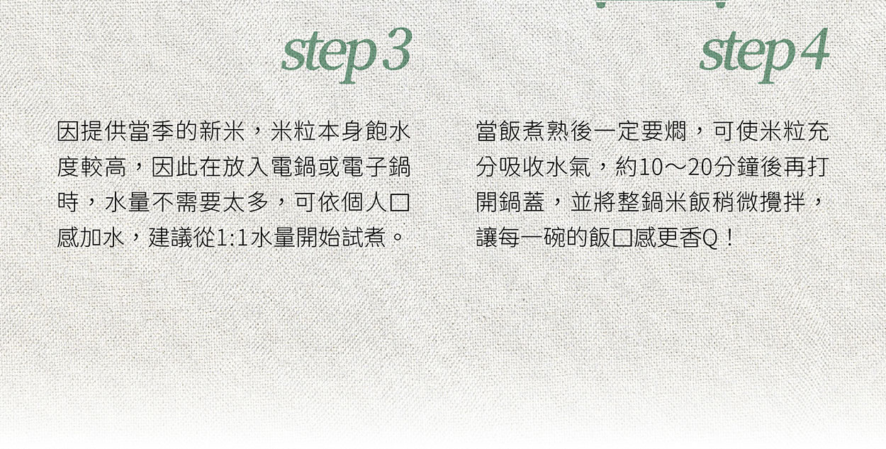 為保持米飯的口感,開封後請盡快食用完畢,如開封後一星期仍未食用完畢,請將米封口並放入冰箱冷藏,可避免米蟲產生。使用轉帳付款之顧客,請務必於轉帳後填寫匯款通知(點此前往),以利確認款項並安排出貨事宜;關於出貨異動及最新消息詳見【重要公告】,配送注意事項詳見【配送說明】,退換貨事項詳見【服務條款】。