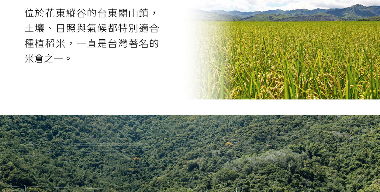 沒有米廠的產銷規模、沒有隨處可見的便利通路、沒有有機米等於健康的高貴迷思。南島秧滿田有的是得天獨厚的縱谷日照,新武呂溪日日夜夜的涓涓流水,以及關山鎮未受工業嚴重污染的翠綠稻田,好吃的關山米從插秧到結穗收割就一直睡在山腳下呢!