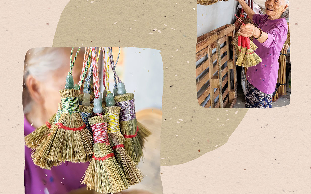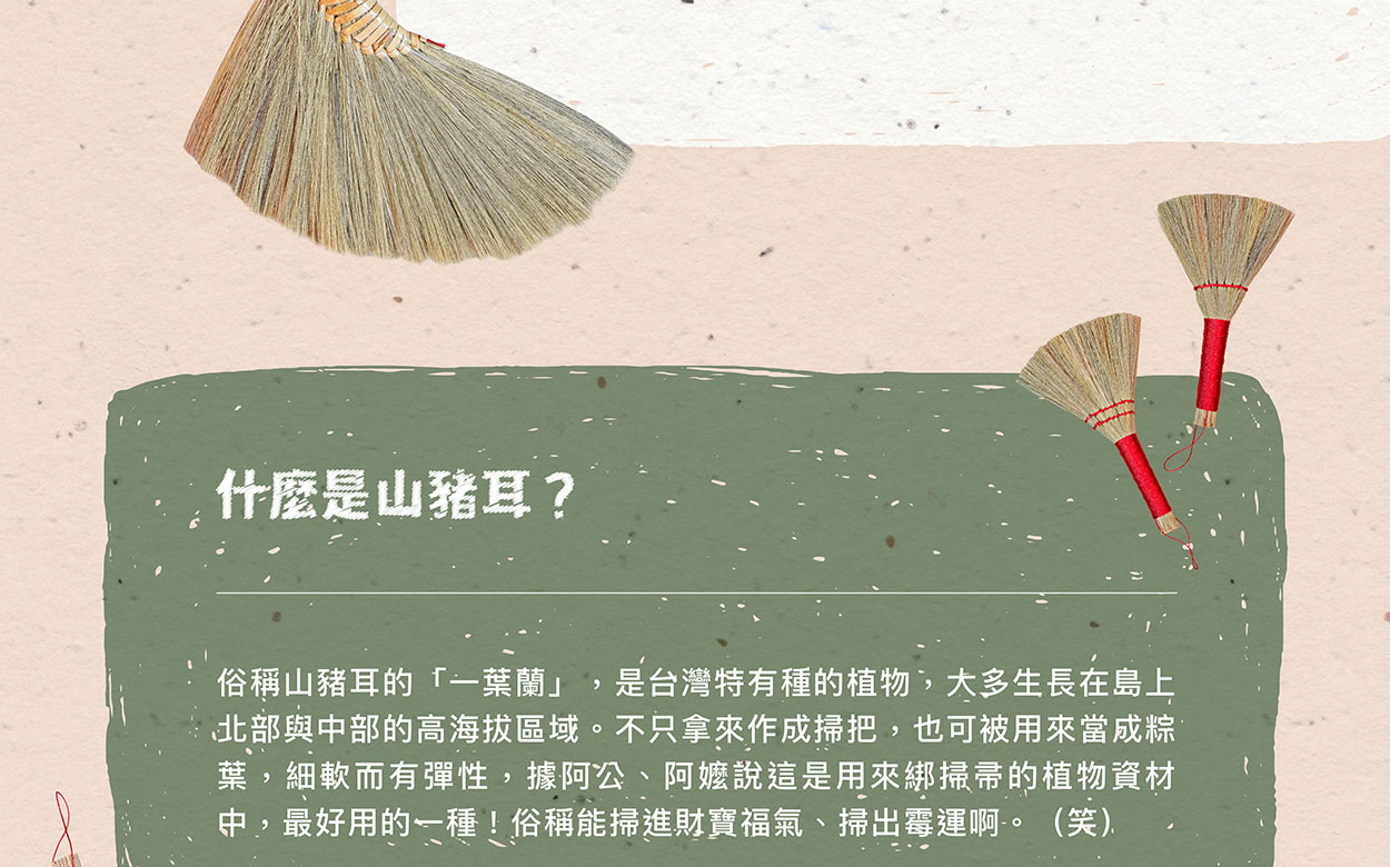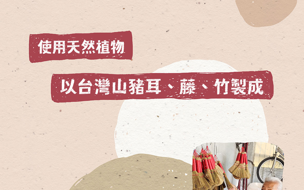以天然山豬耳野草、竹子手工綁製掃帚,重量輕巧、帶有野草清香的刷毛密軟而扎實,再小的灰塵都能輕易清掃乾淨,留下的不只是一地整潔,還有老一輩人的生活智慧 ‼︎